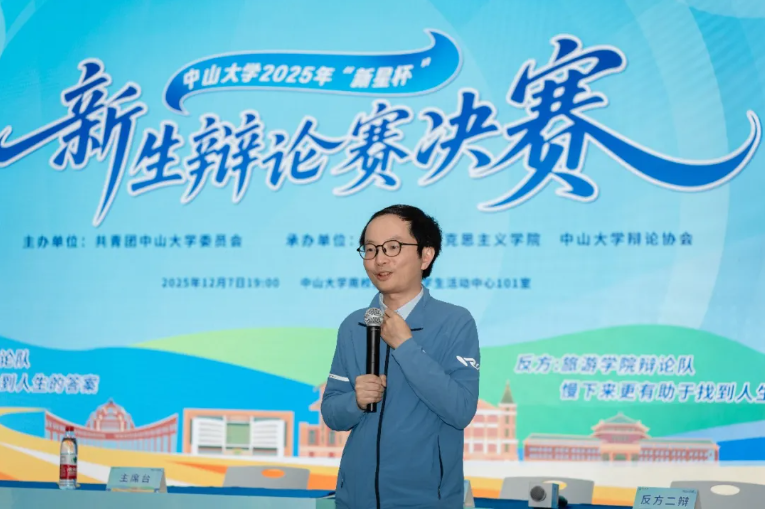 思辨不止,热爱不息;新星加冕,群星共耀。12月7日晚,南校园熊德龙学生活动中心101室座无虚席,2025年中山大学“新星杯”新生辩论赛总决赛在思辨与智慧的交锋中热烈上演。